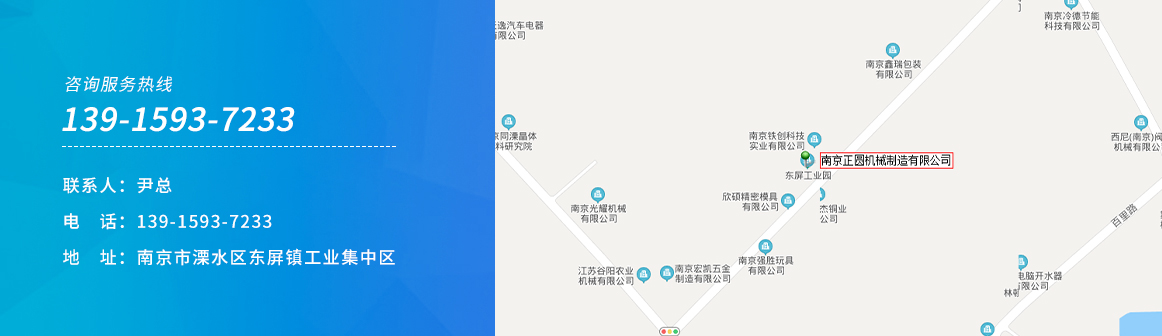 南京正圓機械制造有限公司(簡稱正圓機械)地址位于南京市溧水區東屏經濟特區工業園,距南京祿口國際機場僅30公里,地理位置好,交通發達。公司用現代企業的管理方法,致力于精細化管理和零缺陷作業的管理,立足于產品的質量管理,以其優良的品質,新穎的設計,合理的價格和完善的售后服務贏得了中外客戶的廣泛評。 公司在穩定成長的同時,以期能提供優良的產品給客戶。在多個城市有銷售及服務機構,產品質量穩定,服務到位。正...